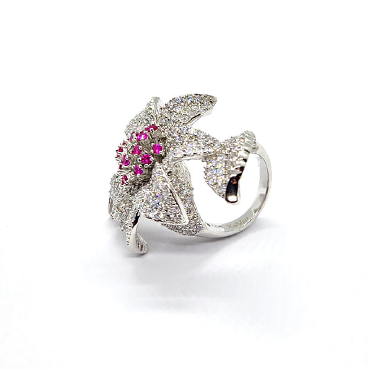 Bold Blossom Sterling Silver Ring with Fuchsia & White CZ | Statement Flower Ring